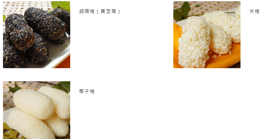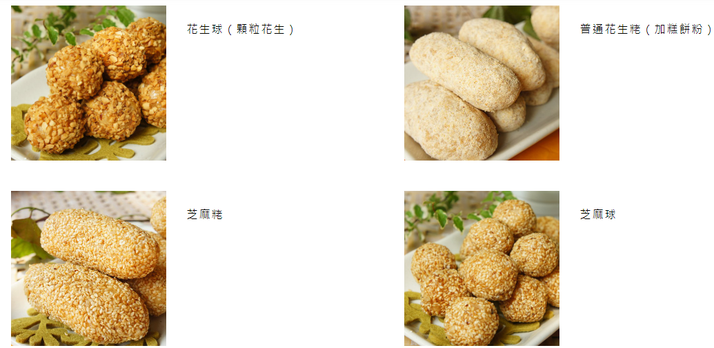 | 口味 | 招牌純花生粩, 普通裹糕粉花生粩, 芝麻粩, 胡麻粩(黑芝麻), 椰子粩, 米粩, 花生球(顆粒花生), 芝麻球 |