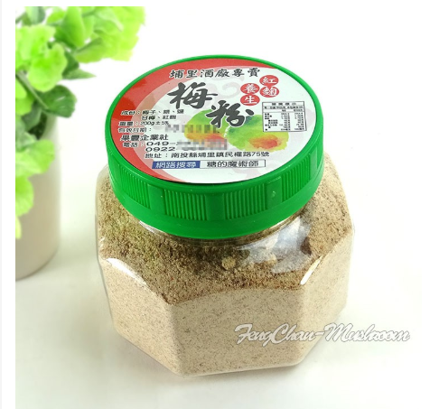 - 遵循古法醃梅作法後烘乾緩慢乾燥磨粉加入紅麴製成