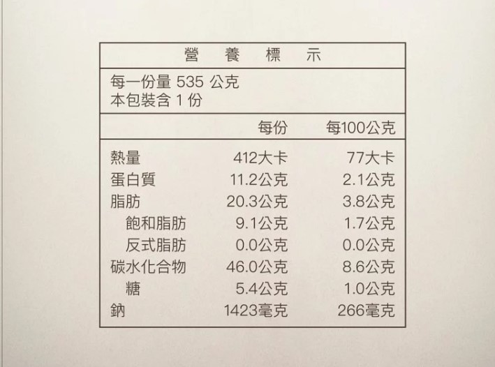- 過敏原資訊:本產品含蛋類、麩質的穀物、螺貝類、魚類及其製品,不適合其過敏體質者食用