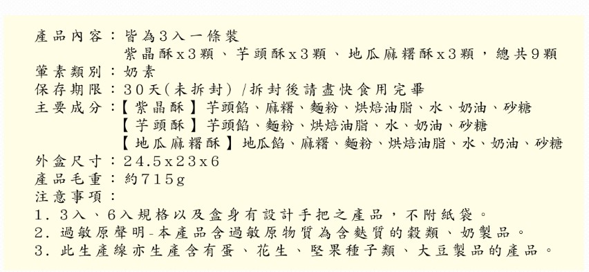 - 過敏原資訊:本產品含有花生製品
