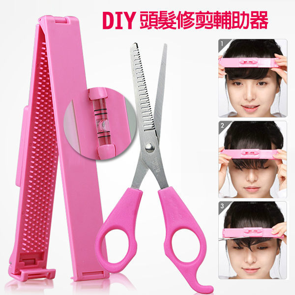 DIY頭髮修剪夾 瀏海修剪輔助器 一組 (剪刀X1+水平平衡尺卡梳X1)